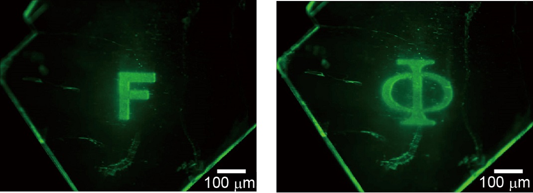 結晶の内部に光を当てて文字を書き込む