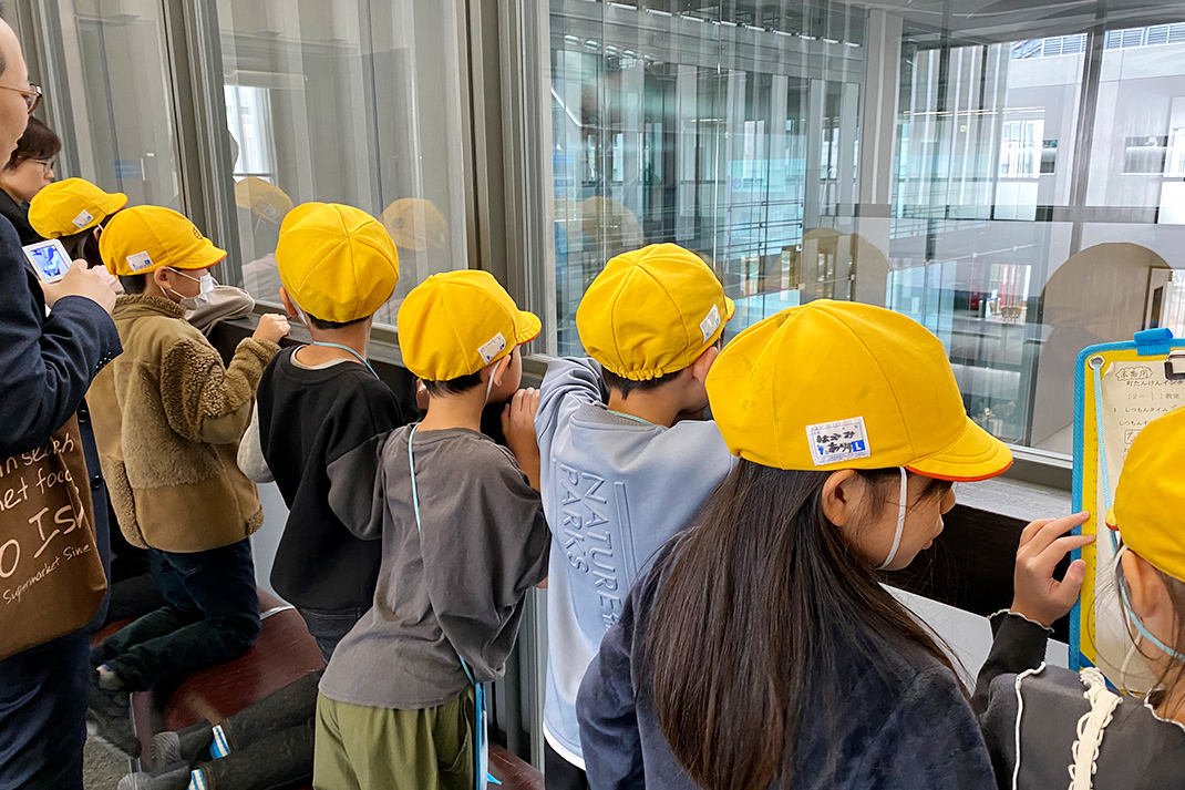 新座キャンパスの隣にある東北小学校の授業に協力しています。この「地域の町たいけん」は、小学生が地域の人々と関わる活動を通して、自分たちの生活が様々な人や場所と関わっていることや、地域の人々の地域に寄せる思いに気付くことを目的にしているものです。児童たちは大学を訪れ、職員へのインタビュー・キャンパス見学を行いました。