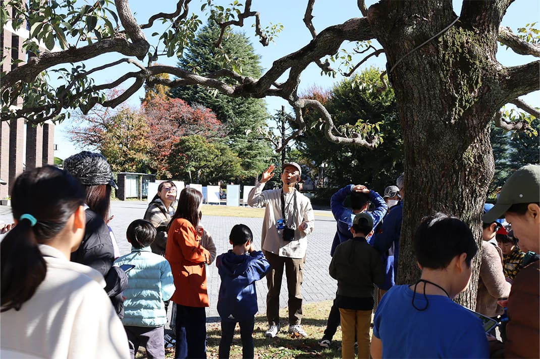 本学の富⼠⾒総合グラウンドが⽴地している埼玉県富⼠⾒市への地域貢献として、毎年運営に協⼒しています。2024年度は、スポーツウエルネス学部の奇二准教授が講師をつとめ、「出発☆びん沼いきもの発見隊~富士見市の自然を観察しよう!~」と題し、児童30名が自然を楽しみました。
