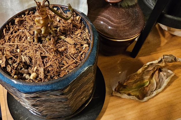自ら落ちた葉はどこか「やりきった」美しさがありました。枯れそうな葉を取るべきか?枯れるまで待つのか?私は移ろいゆく葉の一日一日を観察しましたが、コヘレトの「空の空」にあらためて触れるとき、最後まで頑張った一枚の葉を見届けてよかったと思うのでした。