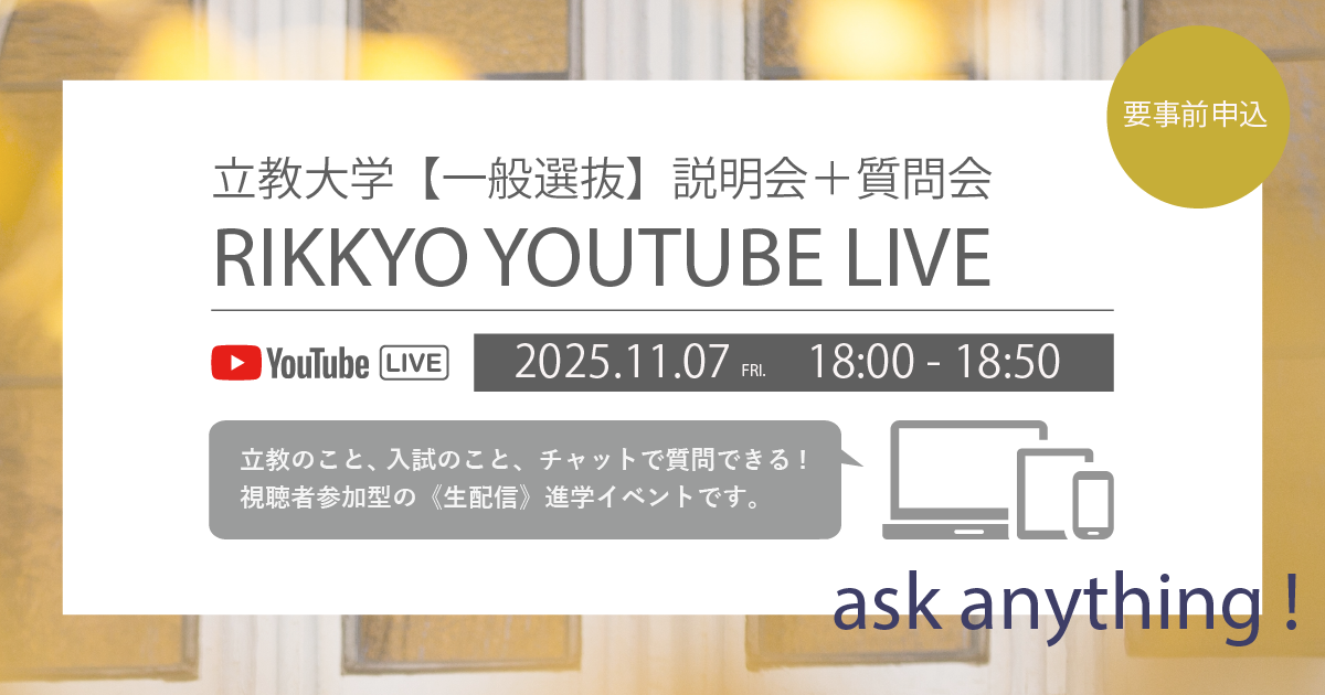 11/7 立教大学YouTubeライブ【一般選抜】説明会+質問会を開催します(要事前申込み)
