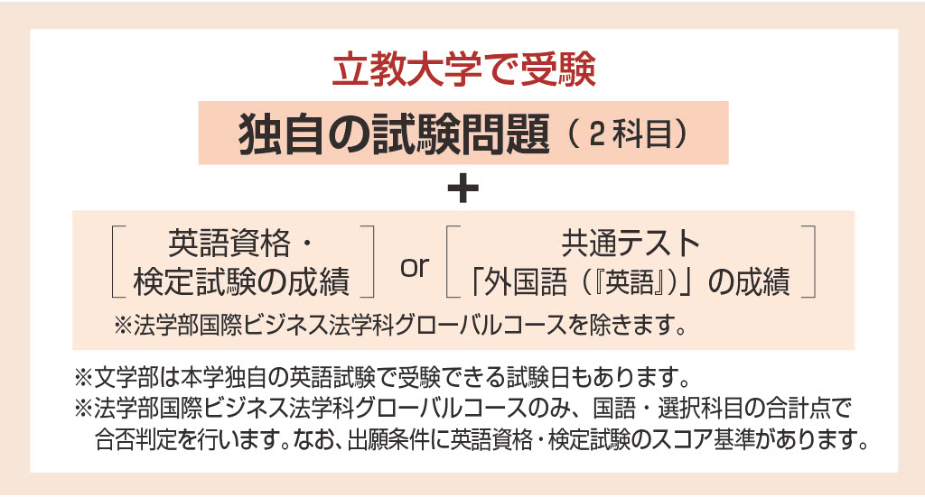 ※ 文学部は本学独自の英語試験で受験できる試験日もあります。