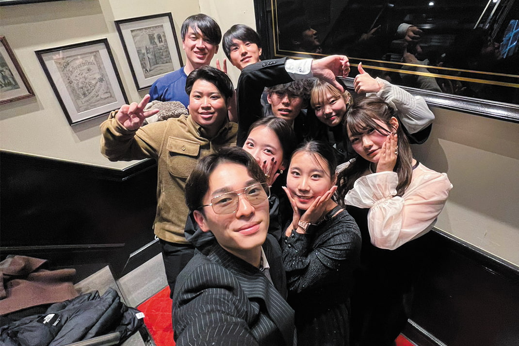 普段暮らしている立教大学国際交流寮「RIR椎名町」の仲間たちと(手前が髙橋さん)