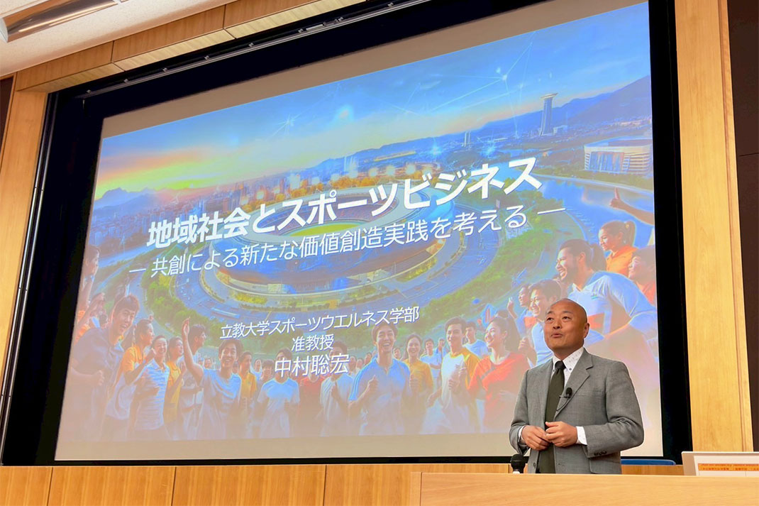 また中村准教授は、「勝ち以上の価値を見つけ出そう」というメッセージを掲げ、スポーツマンシップや教育、健康、福祉、地域の一体感といった社会的・心理的価値を総合的に高めることの重要性を指摘した。スポーツを社会課題の解決に生かすためには、多様なステークホルダーがビジョンを共有し、施設や人材を戦略的に活用していく「共創」の姿勢が求められると語った。