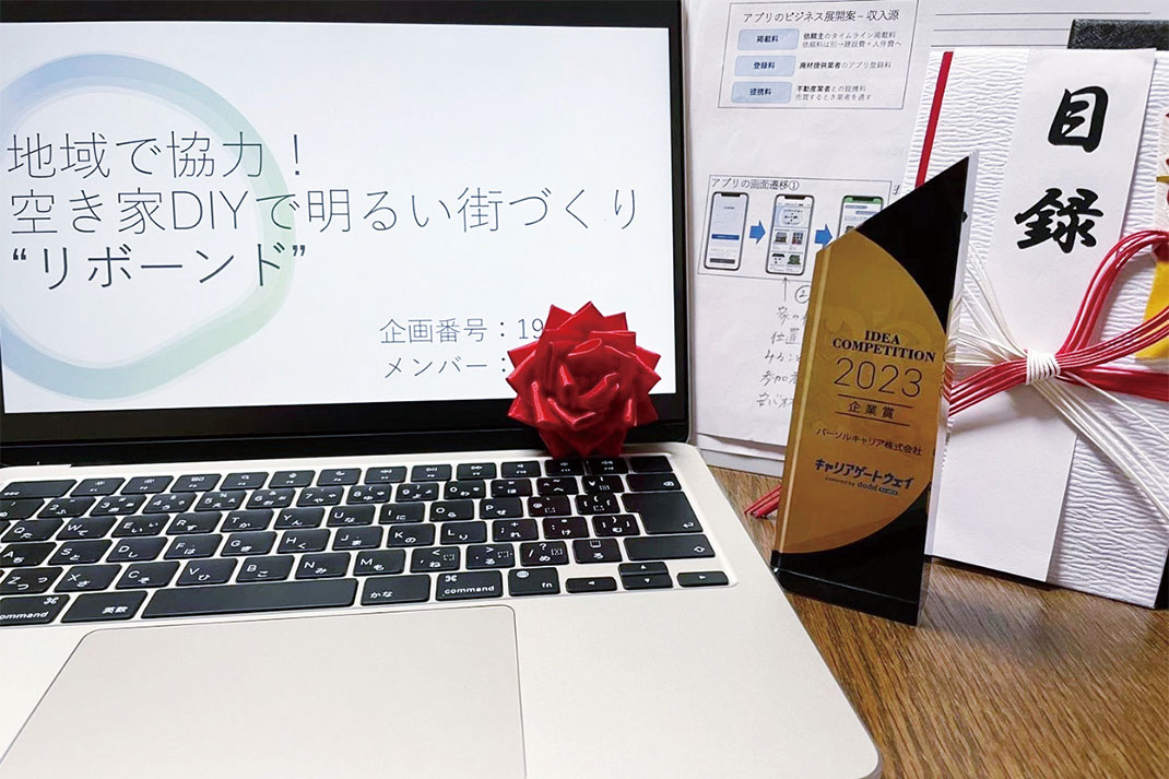2023年の大会で獲得したトロフィー。空き家をリノベーションし、その活用をサポートするアプリ『リボーンド』を提案