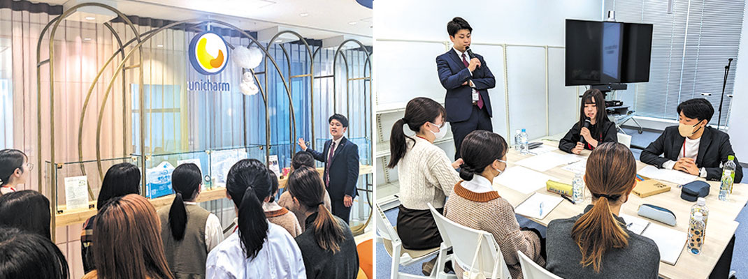 秋休みに、1・2年次生限定の企業訪問プログラムとして開催しました。延べ569人が19社を訪問。業務内容を体験するビジネスゲームや社員の方との懇談などを通して、働くこと、職場の雰囲気などを体感し、キャリアについて考えました。