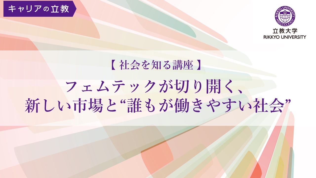 立教大学キャリアセンターは、2025年10月22日(水)に『社会を知る講座~フェムテックが切り開く、新しい市場と“誰もが働きやすい社会”~』を開催しました。『社会を知る講座』は、ビジネス社会で起こっている変化やこれからの働き方をテーマに、その第一線で活躍する社会人から話を聞けるスペシャルプログラムです。