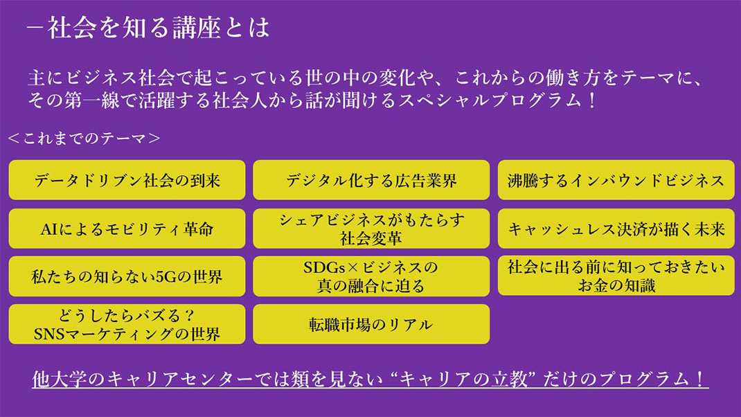 『キャリアの立教』ならではのプログラム!「社会を知る講座」とは?