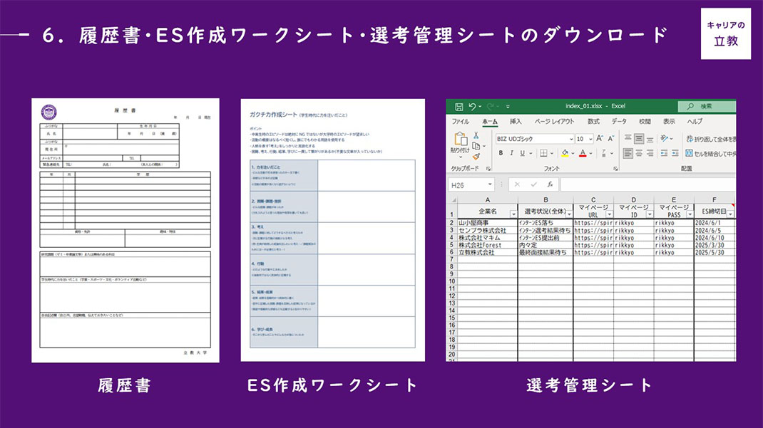 6.履歴書・ES作成ワークシート・選考管理シートのダウンロード