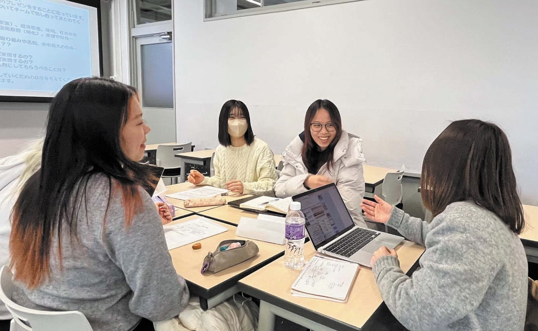NEXUS学生と日本語を母語とする学生および日本語上級者の正規留学生が、グループワークや討論を通して共に学ぶ科目です。前者は日本の大学で学ぶ意味を知り、後者は学んできた「やさしい日本語※2」を駆使して交流を深めながら、自分の固定観念やアイデンティティーに気付く機会を得ます。授業の目的は、異文化理解能力や異文化コミュニケーション能力の習得ではありません。全ての学生が自分と異なるバックボーンを持つ人と共生していくことの難しさを、それぞれの立場から考え、お互いに納得できる社会統合政策の立案を目指します。