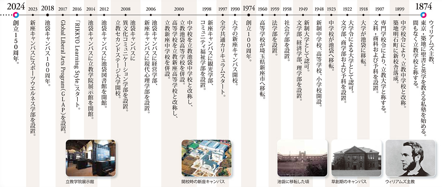2024年、立教学院は創立150周年を迎えます。歴史と伝統を礎としながら、あらゆる分野の学びをつなぎ、共に生きる未来をつくる取り組みを進めています。およそ150年前、創立者はどのような思いを胸に、立教学院の前身「立教学校」の歩みを始めたのか。どのような道をたどり、これからどこへ向かおうとしているのか。150周年の節目を前に歴史と現在、そして未来に迫ります。