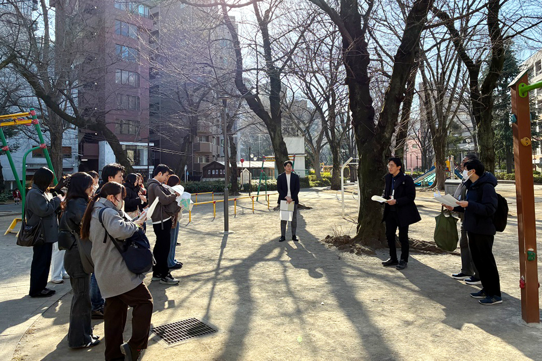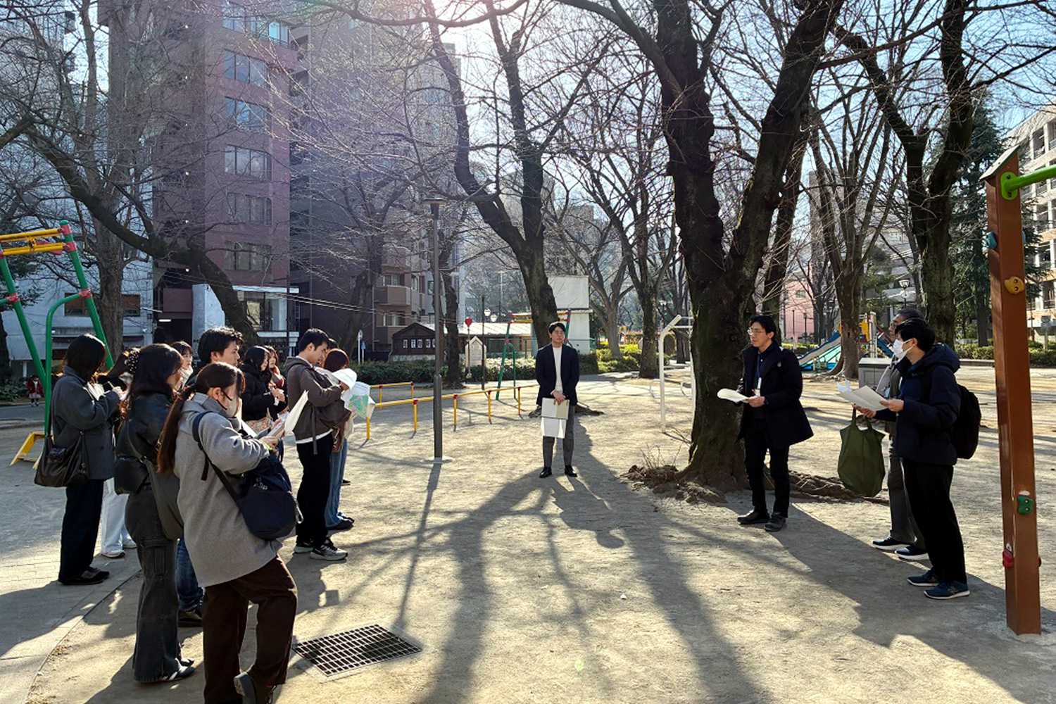 1月17日(土)には、フィールドワークとして実際に西池袋公園に足を運び、豊島区ご担当者様による説明のもと、現地の様子を見学しました。