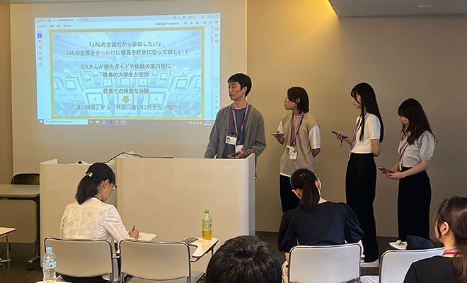 【JALサマーワークショップ2025】を実施しました! 2025JALサマーワークショップ 9/1・9/3 今年は【地域活性化施策~もっと人を呼び寄せたいと思っている地域(佐賀県or徳島県)を、JAL社員になったつもりで応援しよう!】についてチームで議論を重ね、提案させて頂きました。 JALグループの取り組み・業界の現状についてお話頂き、実りある2日間になりました。 経済学部「JALサマーワークショップ2025」 2025年9月1日(月)・9月3日(水)