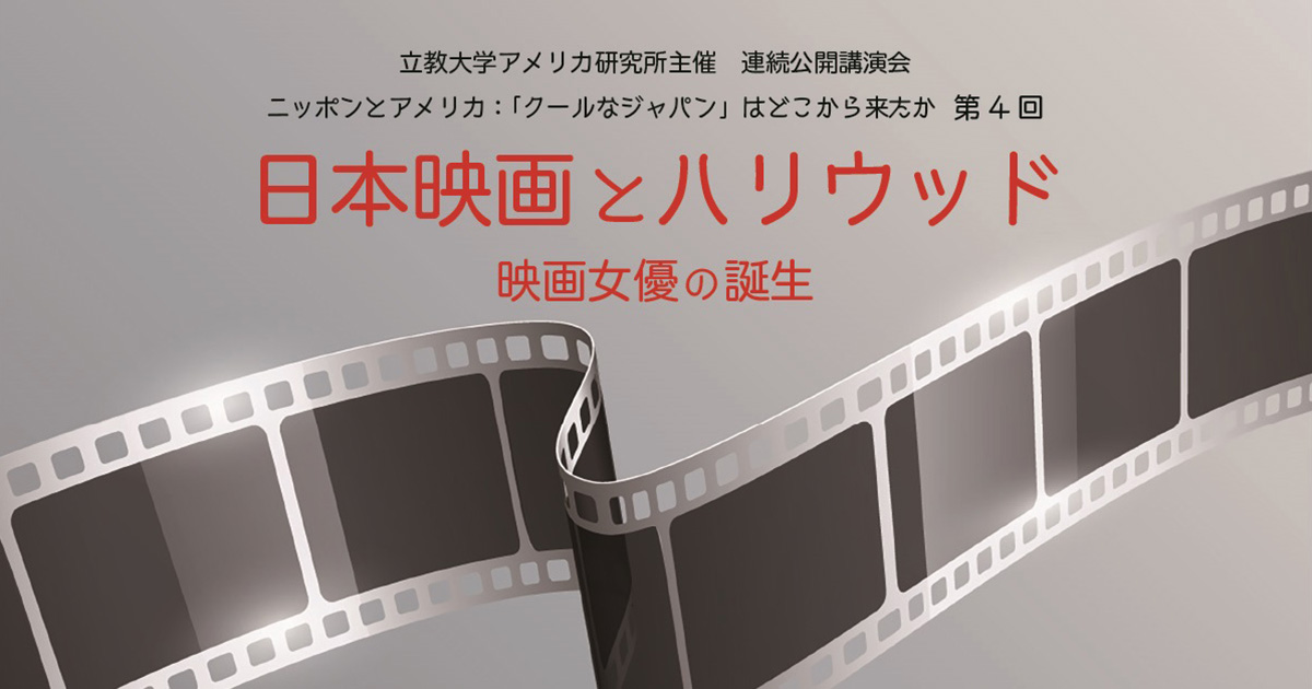 この連続講演シリーズでは、近年「クール」という形容詞とともにメディアで取り上げられることの多い、戦後の「日本」文化の起源や性質を、戦前・戦後において強い影響力を持ち続けてきたアメリカの大衆文化との関連性のもとに考察する。連続講演第4回目は、映画研究者の宮尾大輔氏を招き、女優の誕生というテーマでご講演いただく。とりわけ、早川雪舟の妻で、早川よりも前からハリウッドで人気だった青木鶴子、そして日本映画初の女性スターと言われる栗島すみ子に焦点をあて、「映画女優」の誕生における初期ハリウッド映画の影響を考察する。