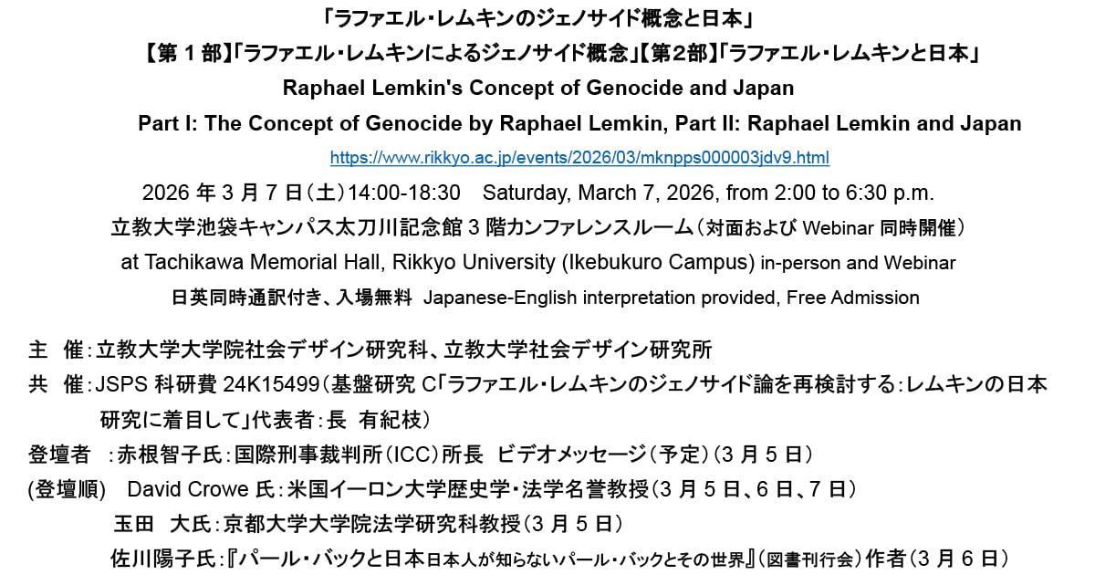 公開シンポジウム「ラファエル・レムキンのジェノサイド概念と日本」(Raphael Lemkin's Concept of Genocide and Japan)