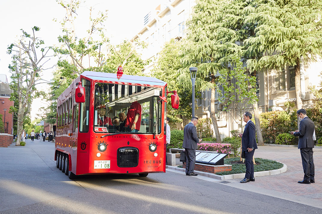 祝賀会会場に向けて、鈴懸の径を走るIKEBUS