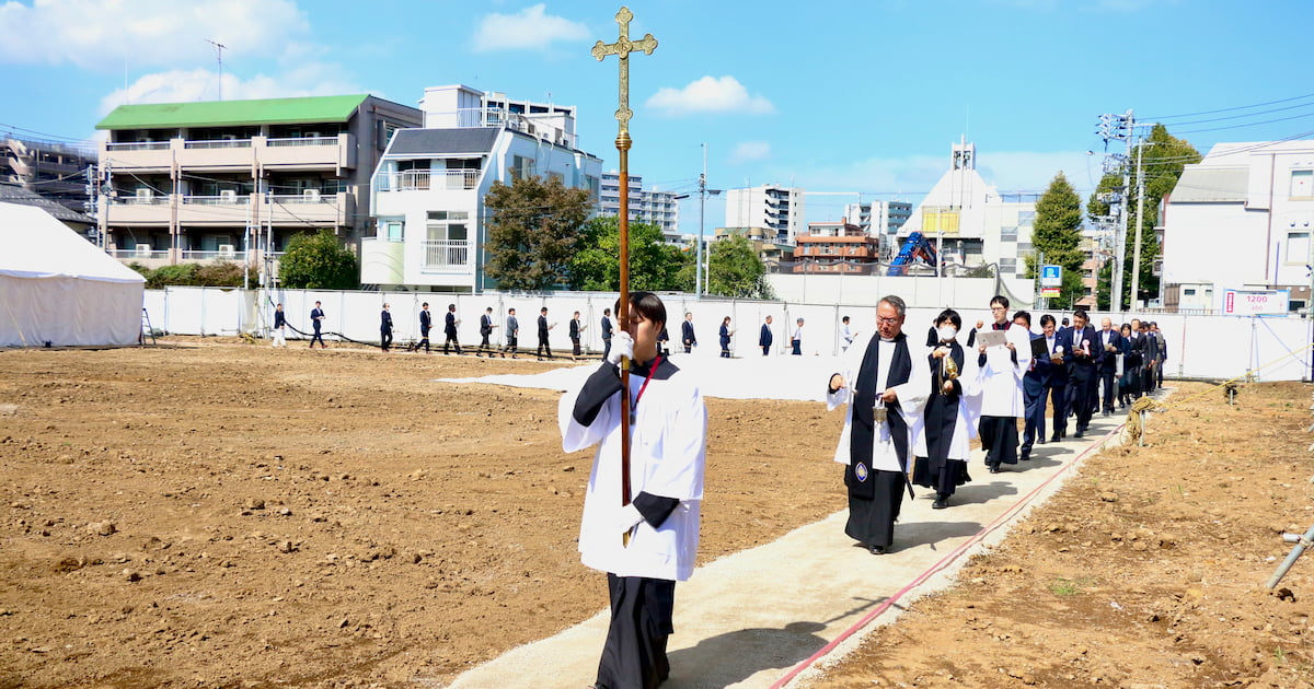 本建設工事は、立教学院創立150周年記念事業の一つである「新ミッチェル館(仮称)建設事業」として実施されるもので、起工式には、福田裕昭立教学院理事長、西原廉太立教学院院長・大学総長らが参列し、工事の安全を祈願しました。