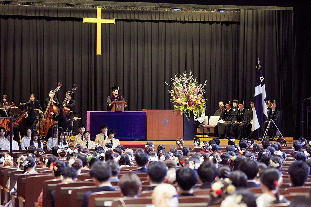 タッカーホールで行われた2024年度学位授与式(春季)の様子