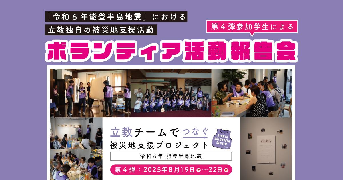 立教大学(東京都豊島区、総長:西原廉太)は『立教チームでつなぐ「令和6年能登半島地震」被災地支援プロジェクト』第4弾参加学生による活動報告会を2025年10月21日(火)に開催いたします。