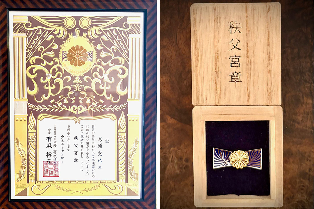 10月4日(土)滋賀県彦根市の平和堂HATOスタジアムにて、スポーツウエルネス学部の杉浦克己特別専任教授が公益財団法人日本陸上競技連盟より2024年度「秩父宮章」を受章しました。