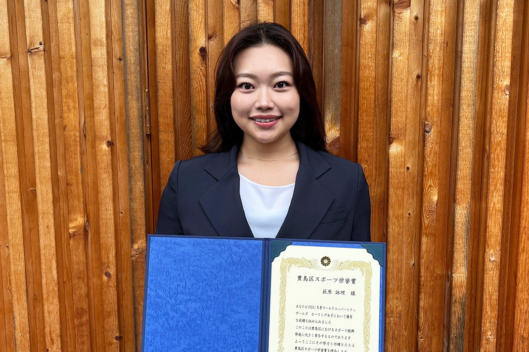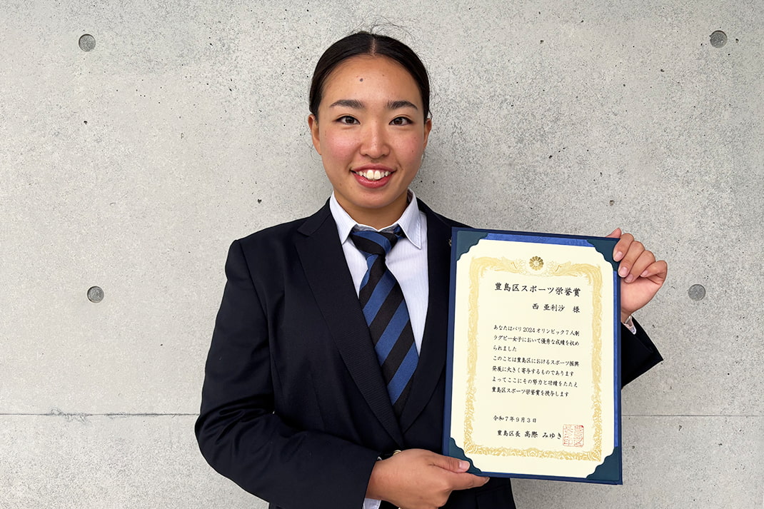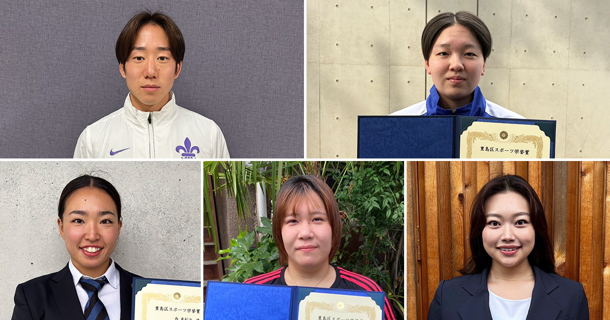 豊島区のスポーツ栄誉賞を立教大学の5人(馬場賢人さん、松永琴寧さん、西亜利沙さん、石井さくらさん、荻原詠理さん)が受賞しました。