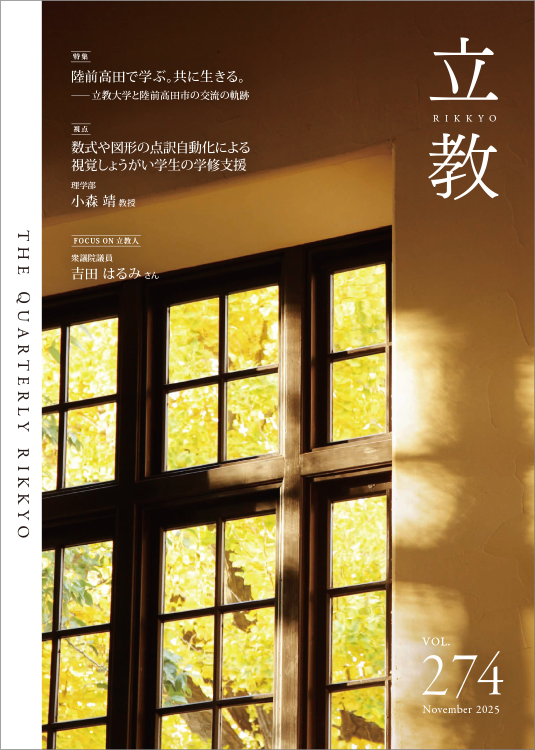 季刊『立教』274号を発行しました。本誌は、広く社会に向けて教育・研究の多様な側面を取り上げるほか、在学生や卒業生の活躍など「立教」にまつわる多彩なトピックを発信しています。定期購読をご希望の方は、RIKKYO ONLINE SHOPよりお申し込みください。