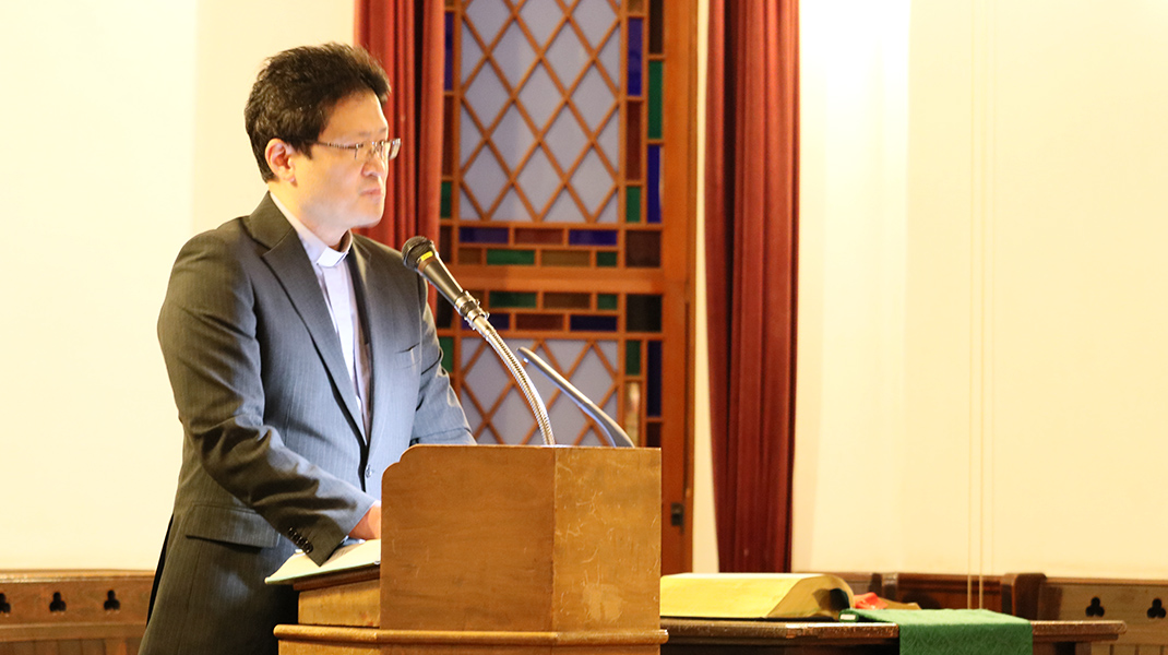 春学期に続く今回の「夕の祈り~奨励交換」では、池袋キャンパスの立教学院諸聖徒礼拝堂(池袋チャペル)にて、同志社大学キリスト教文化センターの森田喜基准教授が奨励者として招かれ、「人は弱い部分で失敗しない。」と題し奨励されました。
