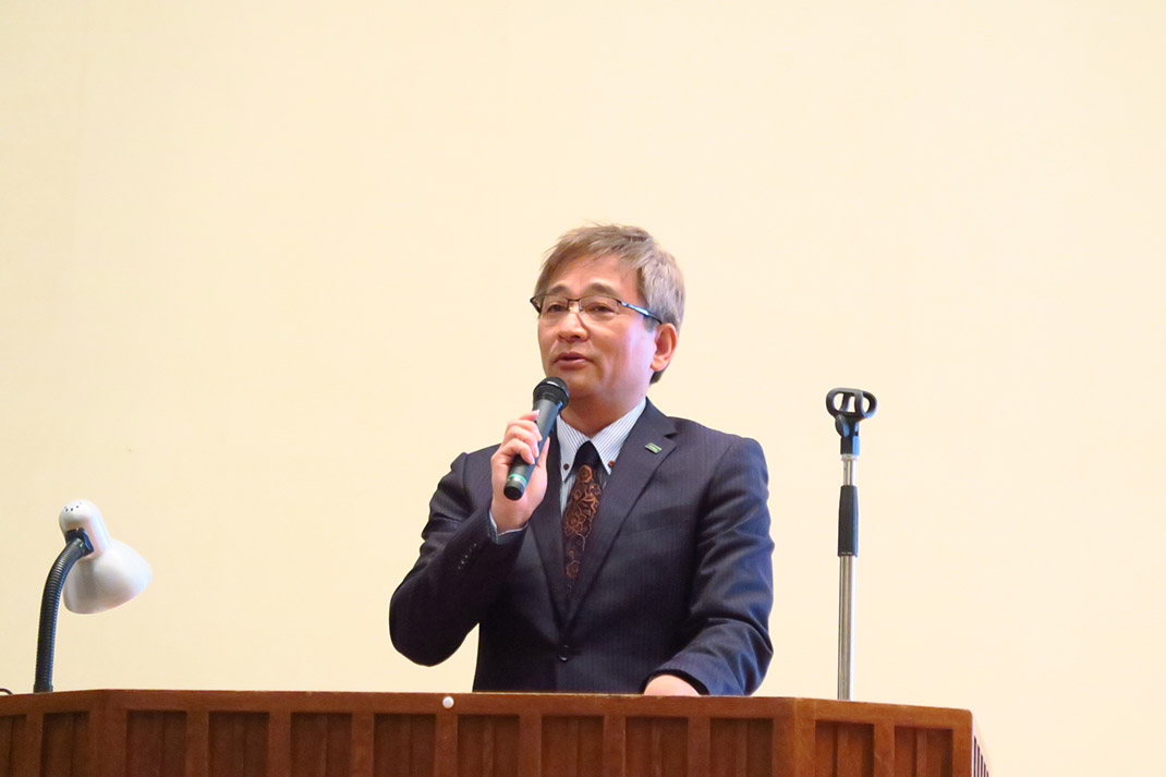 開会のあいさつをする酪農学園大の岩野英知学長