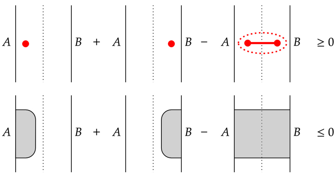 図4:相互複雑性の計算イメージ。(上)ガウス状態の相互Krylov複雑性は劣加法的であるのに対し、(下)ホログラフィック状態に対するホログラフィック複雑性は優加法的となっている。