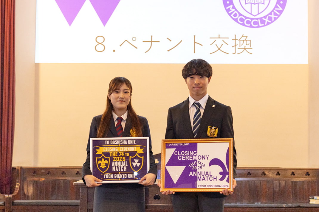 2026年2月27日(金)14時から、同志社大学今出川キャンパスの同志社礼拝堂において、第74回同志社大学・立教大学総合定期戦閉会式が執り行われました。
