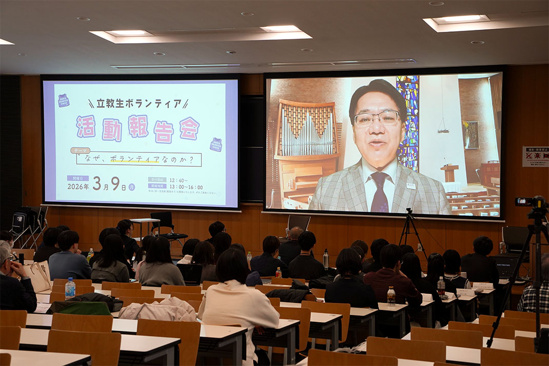 例年、立教大学ボランティアセンターが主催している本報告会ですが、今年度は大学間協定に基づき、同志社大学からボランティアサークル6団体・計14名の学生および教職員の皆様にもご参加いただきました。両大学の学生が日頃の活動内容やボランティアへの想いを共有し、大学の垣根を越えて互いに学び合う貴重な機会となりました。