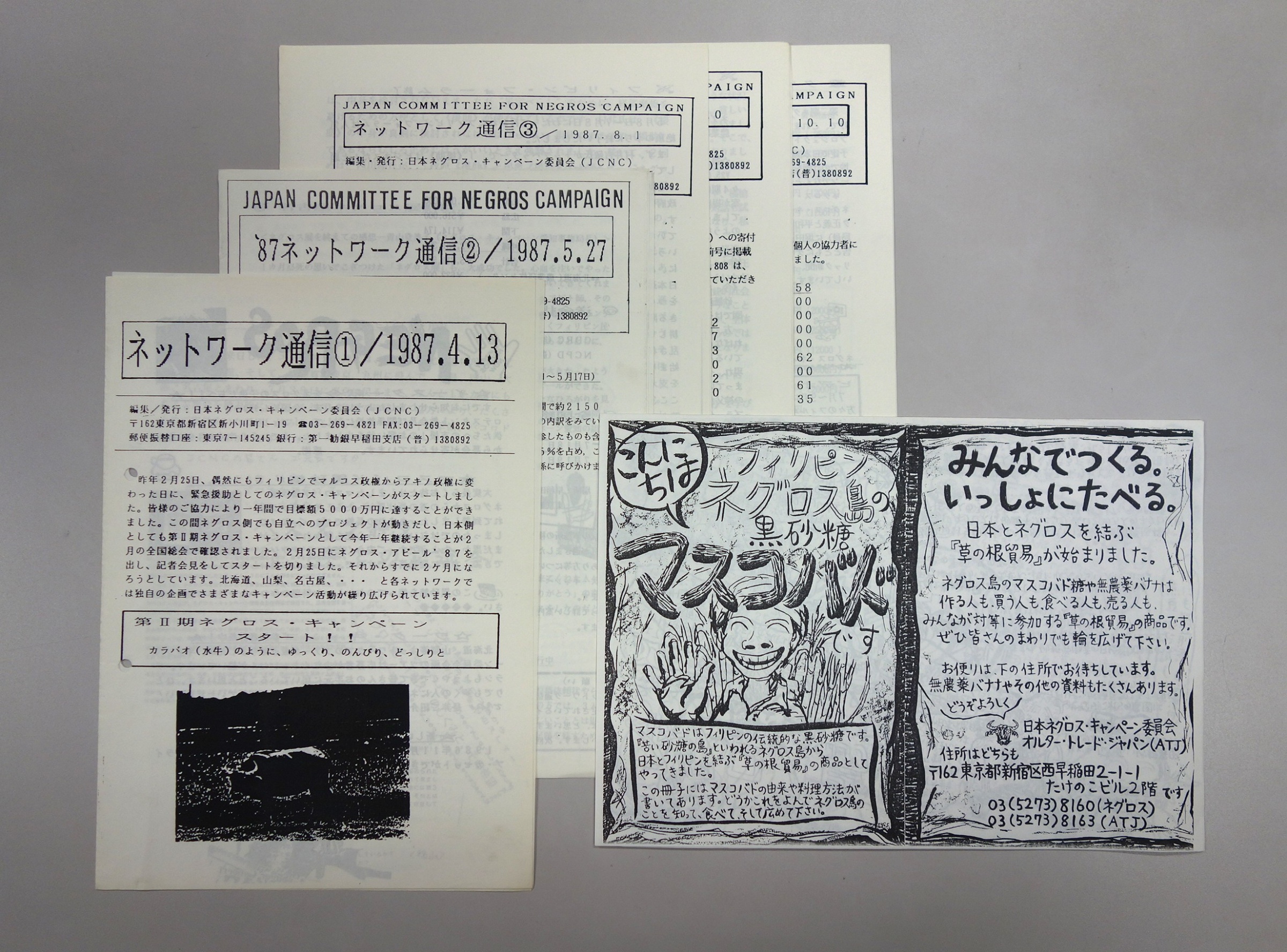 JCNCの活動は日本各地でJCNCネットワークとして展開され、さらに各地の生協を通じて民衆交易の商品(砂糖やバナナなど)が日本の消費者に届けられました。JCNC資料には、北は北海道、南は九州のグリーンコープに至るまで、日本各地の組織とつながりをもっていたことがわかる資料が含まれています。