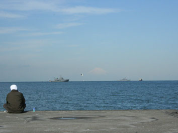 ウミホタルの採集 今回の実験のために、初春の寒い海にウミホタルを採集に・・・。採集は夜に行います。 |