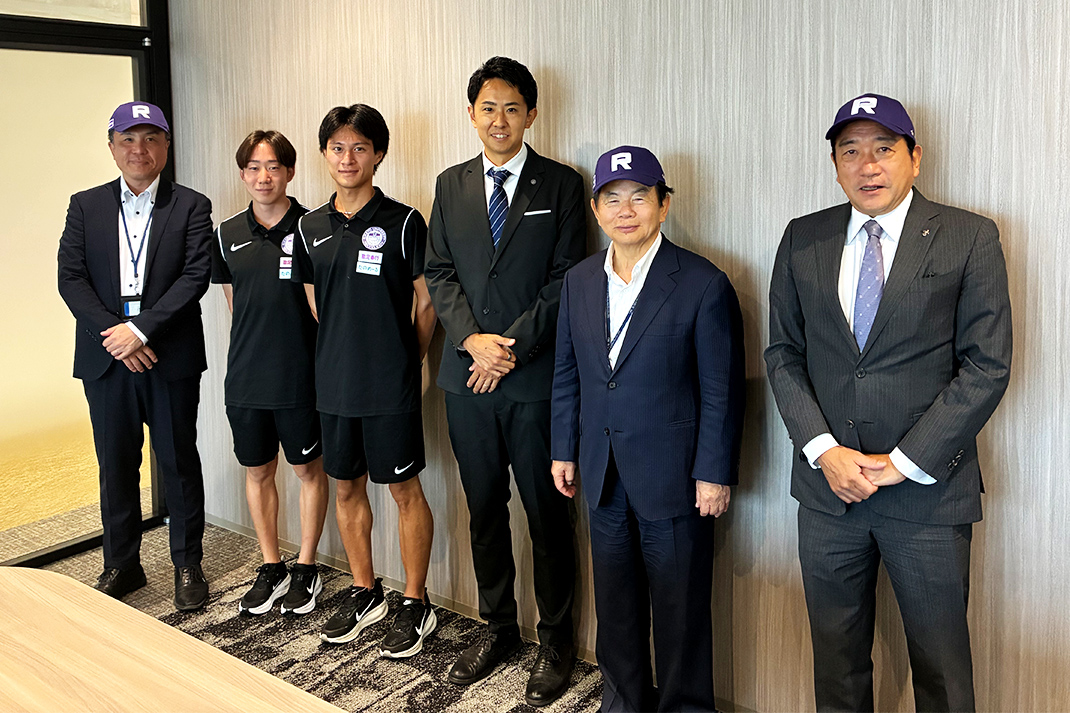 この訪問では、両社からの多大なご厚意に対する感謝の意を示すとともに、これから始まる大学駅伝シーズンに向けた決意表明を行いました。選手たちは、ご支援への感謝を胸に、熱い思いを伝えました。