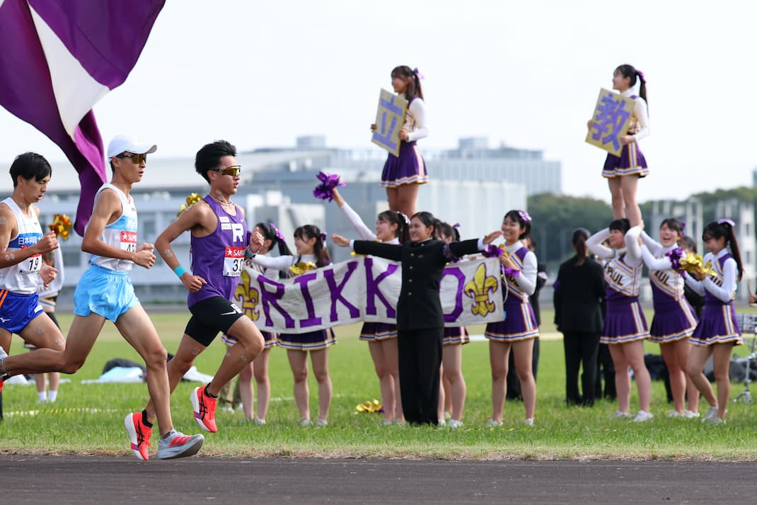 応援団の熱い声援を力に変えて駆け抜ける主将の國安広人さん(経営学部経営学科4年次)。