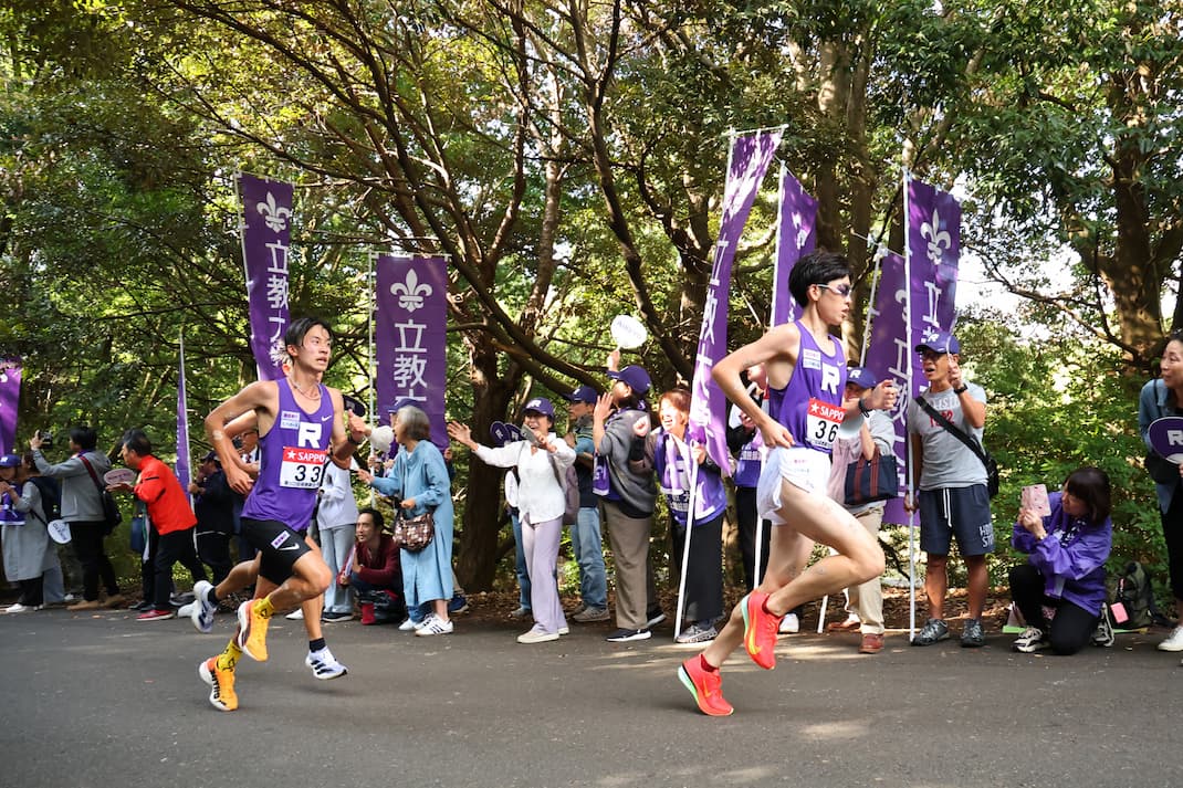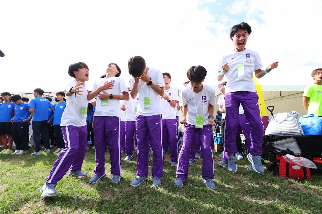 暑さ対策により、昨年より約1時間早い午前8時30分にスタート。立教チームの上位10人は前半の5キロと10キロ地点を1位で通過。17.4キロ地点では8位と順位を落としながらも、チーム全員が最後まで粘り強い走りを見せました。合計タイムは10時間36分56秒。ボーダーラインとなる全体10位で通過を果たしました。結果発表で最後の1枠として本学の名前が呼ばれると、選手たちは安堵と歓喜で大粒の涙を見せました。